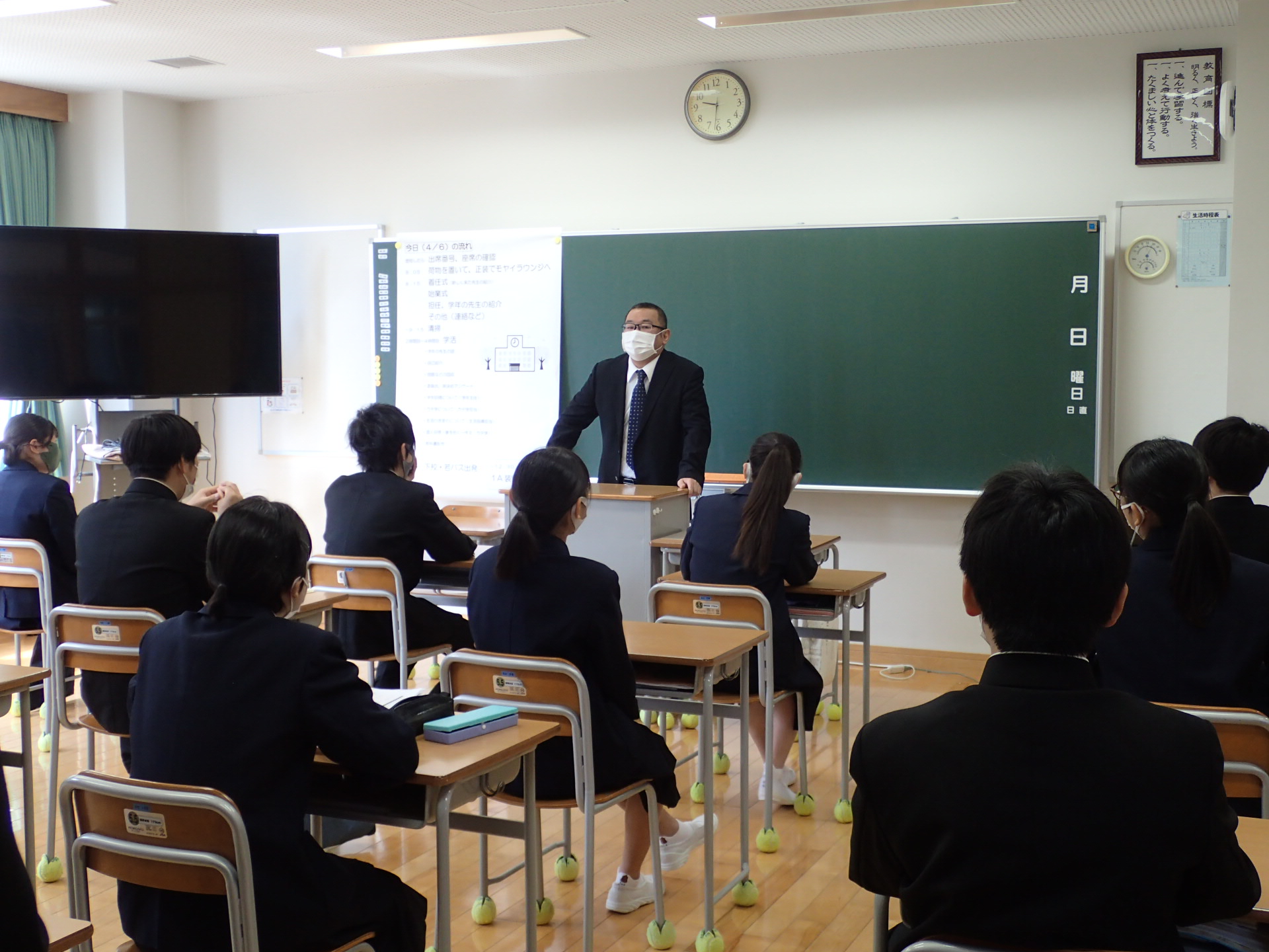 今年度もしばらくはコロナ禍の影響でマスクの着用、ジャージ登校などの感染症対策を継続して行います。不自由を強いることになりますが、できることに集中して取り組んでいきましょう。